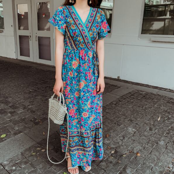 エスニック柄ワンピース フレアワンピース ロング ロング丈 マキシ マキシ丈 袖あり 半袖 Vネック カシュクール フレア 綿 かわいい 大人可愛い きれいめ シンプル カジュアル 大人 上品 おしゃれ お洒落 アジアン エスニック エキゾチック 大人可愛い 大人女子 こなれ感 ラブリー キュート ガーリー モダン 主役級 存在感 柄 春 夏 10代 20代 30代 レディース 学生 通学 デート お出かけ 女子会 休日 着回し 普段使い 重ね着 サイズ S M L XL 2XL 色展開 白