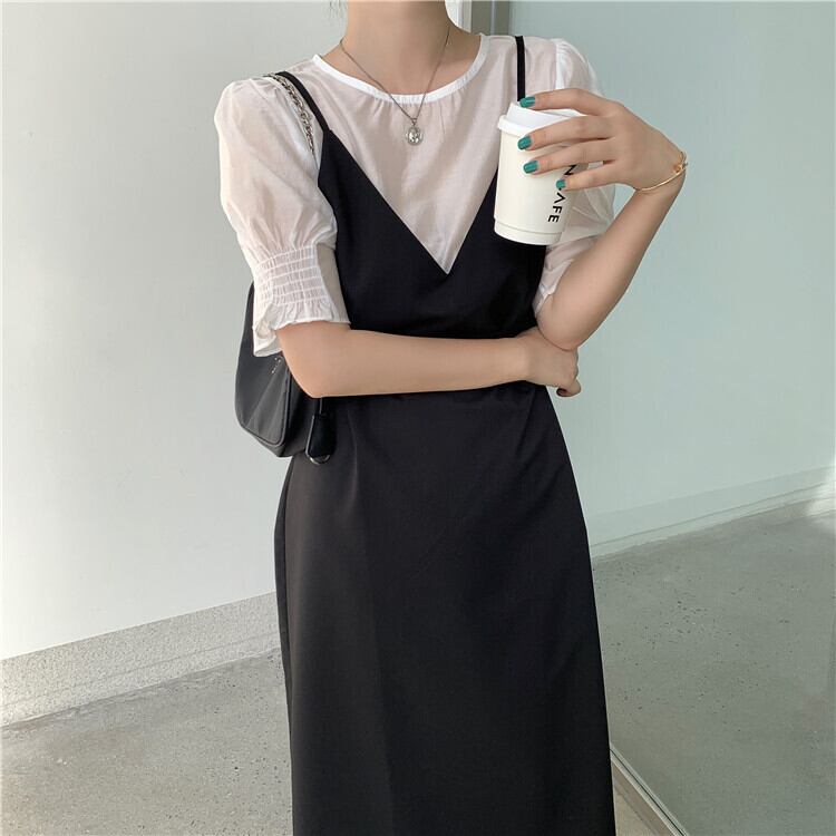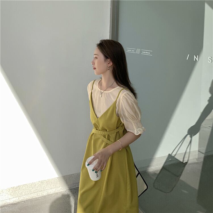 ドッキングワンピース フレアワンピース ミモレ ミモレ丈 ロング ロング丈 袖あり 半袖 パフスリーブ ラウンドネック フレア ドッキング スリット ドッキング かわいい 大人可愛い きれいめ シンプル カジュアル 大人 上品 おしゃれ お洒落 大人可愛い 大人女子 こなれ感 ラブリー キュート ガーリー モダン 主役級 存在感 無地 春 夏 10代 20代 30代 レディース 学生 通学 デート お出かけ 女子会 休日 着回し 普段使い 重ね着 サイズ S M 色展開 黒 ブラック 黄色 イエロー