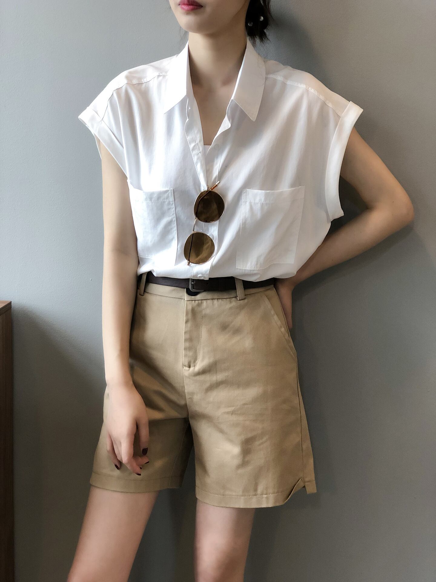 ノースリーブシャツ トップス シャツ ブラウス 白トップス 袖なし ノースリーブ 襟付き ポケット 前開き 大人可愛い きれいめ シンプル カジュアル おしゃれ お洒落 大人女子 こなれ感 ラフ クール フォーマル 抜け感 無地 春 夏 10代 20代 30代 40代 レディース 女性用 オフィス ビジネス OL 通勤 学生 通学 デート 着回し 普段使い 韓国 韓国系 S M L 白 ホワイト 青 ブルー 茶 ブラウン