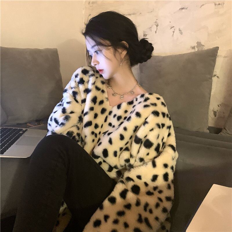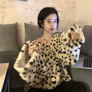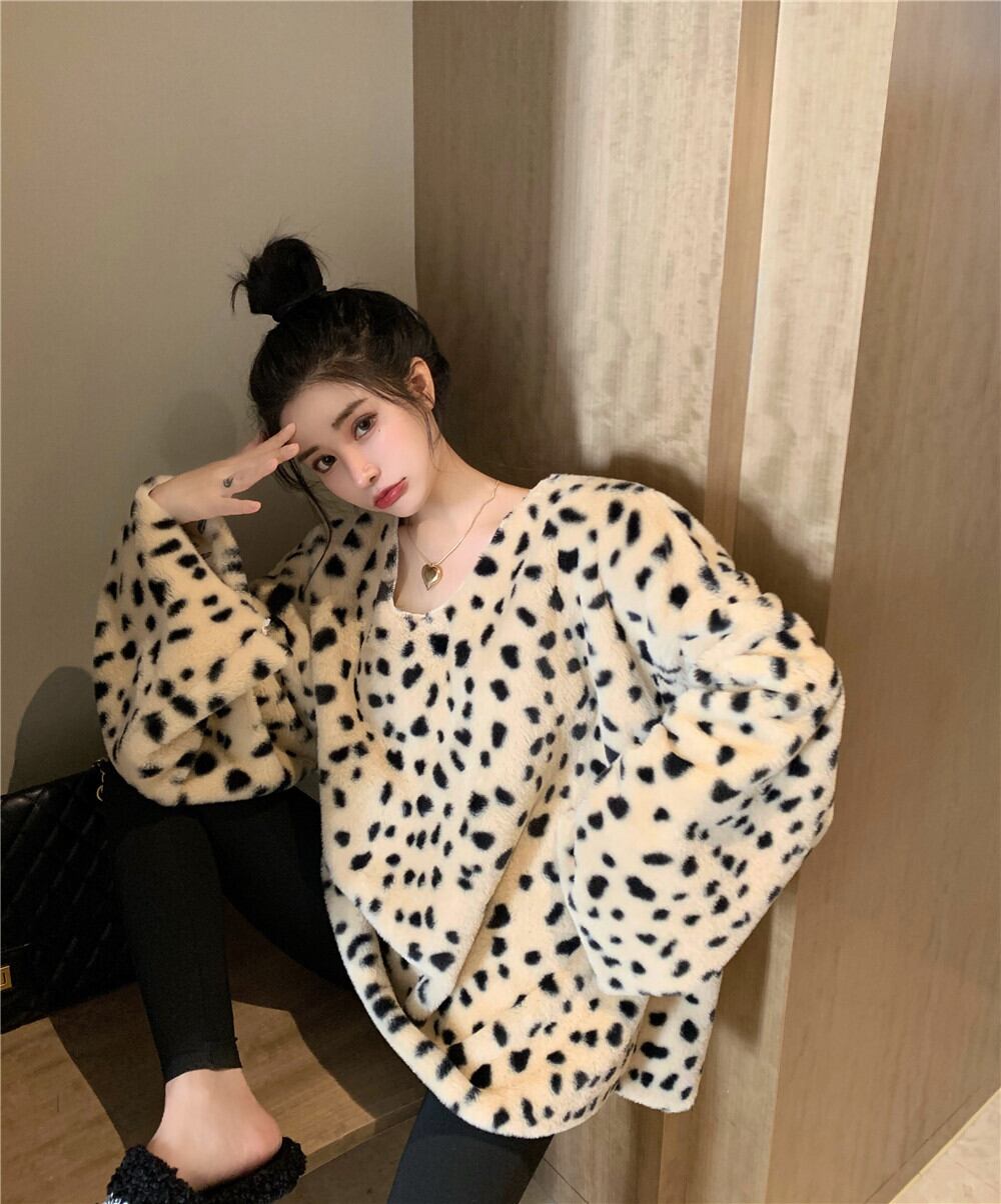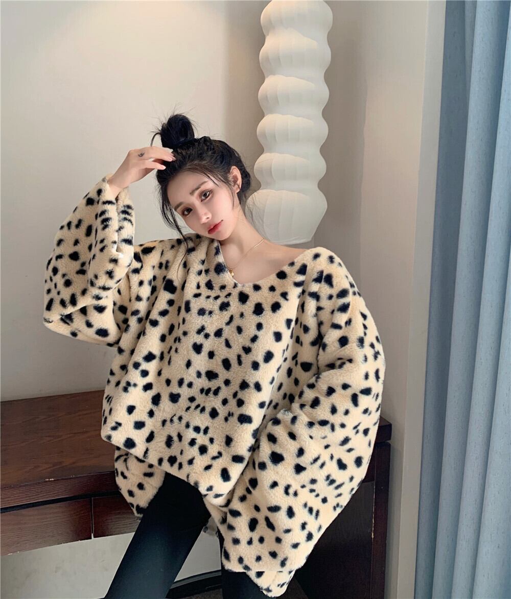 ヒョウ柄×もこもこ生地が可愛いロング丈トップス。