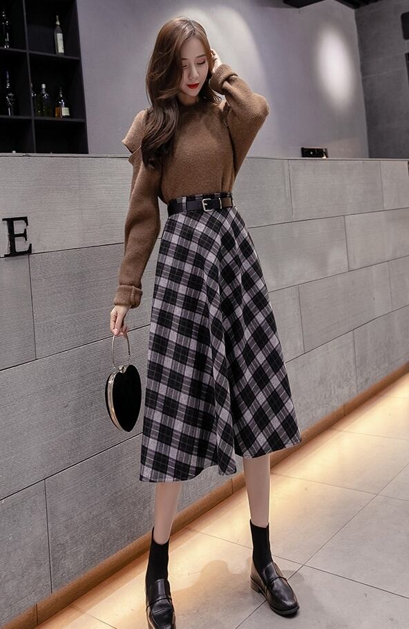 チェック柄がレトロ可愛いイメージを与えてくれるフレアスカート。
