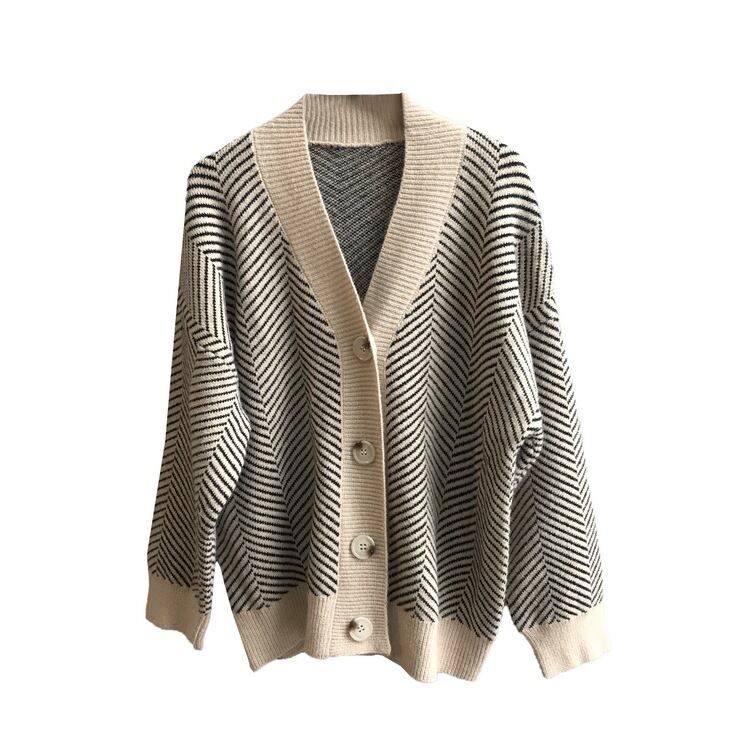 シーズンムード高まるヘリンボーン柄がレトロな雰囲気のニットカーディガン♪