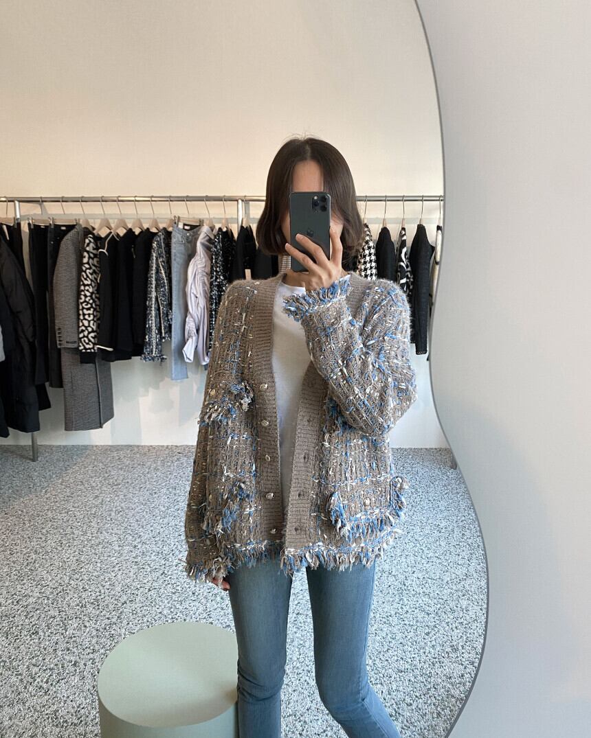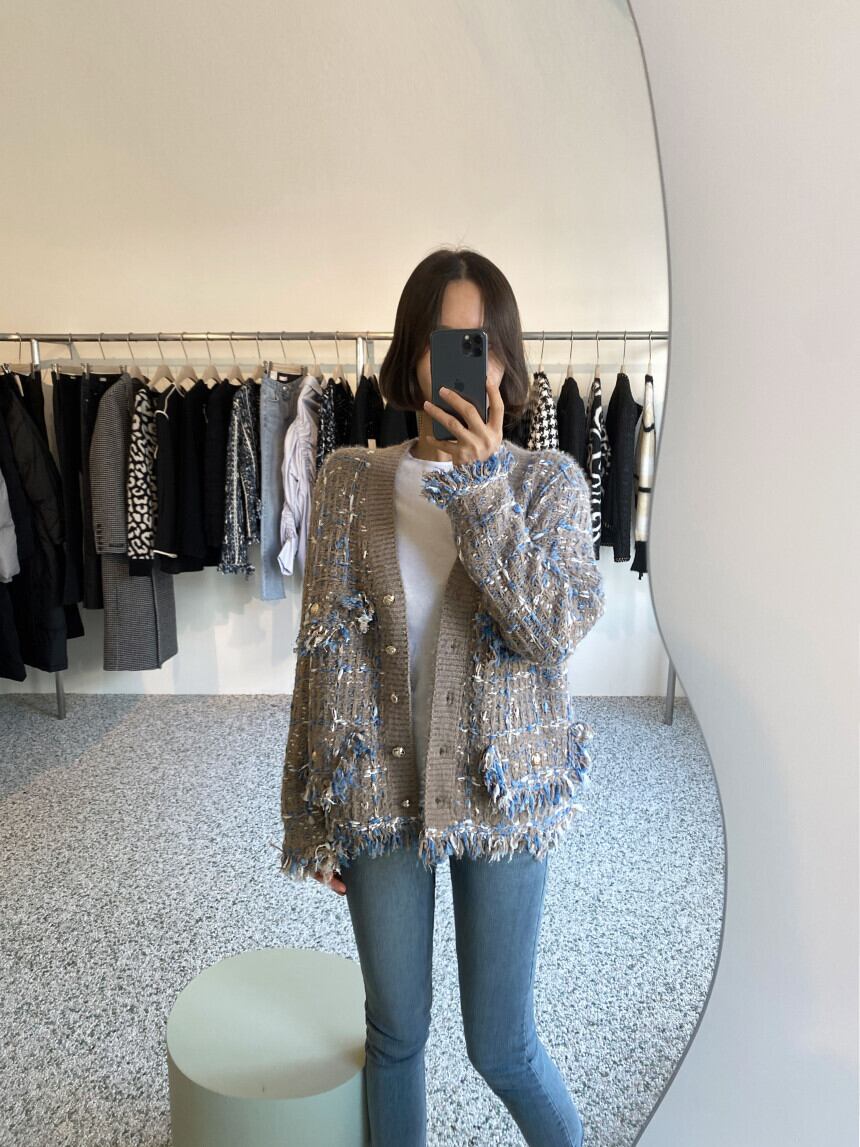 コーディネートの鮮度を上げるツイード風の編地が特徴的なニットカーディガン♪