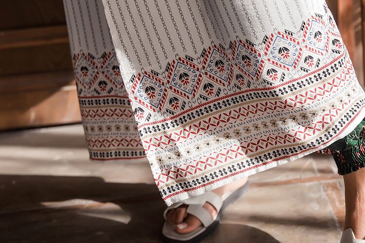 リゾートライクで、エスニックなデザインが夏らしい雰囲気です。水着に羽織って、ビーチやプールのコーデに大活躍。チューブトップやショート丈トップスとレイヤードして、お出かけコーデにも取り入れられますよ。