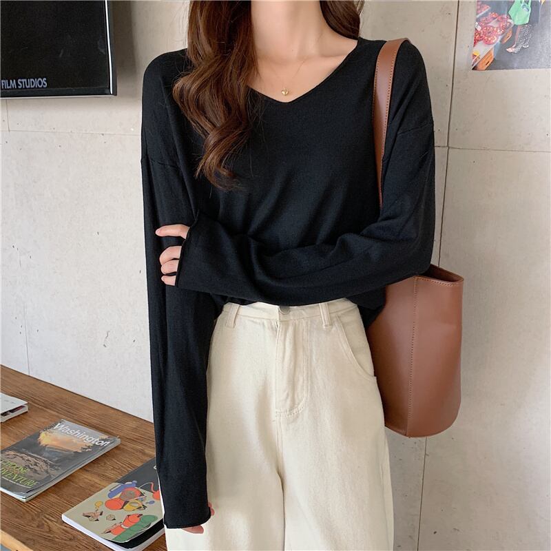Vネックセーター トップス セーター 袖あり 長袖 Vネック 薄手 シンプル カジュアル 大人 おしゃれ お洒落 大人女子 こなれ感 ラフ とろみ感 抜け感 無地 春 秋 10代 20代 30代 40代 50代 レディース 女性用 OL 学生 通学 デート 休日 着回し 普段使い 重ね着 韓国 韓国系 ファッション 楽ちん モテ フリーサイズ 白 ホワイト 黒 ブラック オフホワイト ピンク