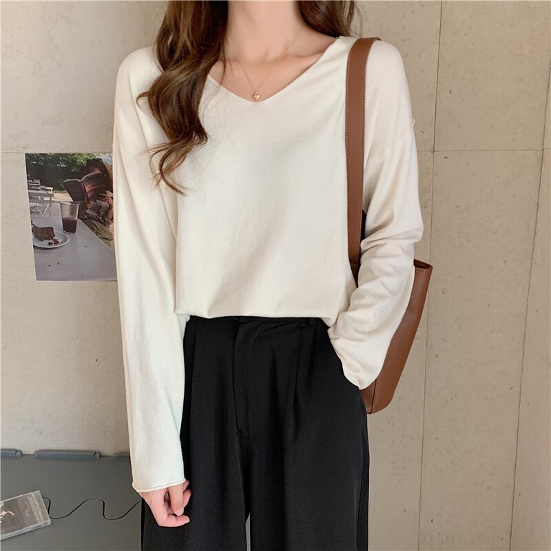 ゆったりナチュラルな印象のVネックトップスです。