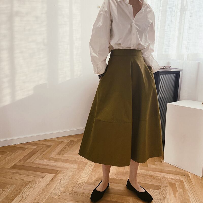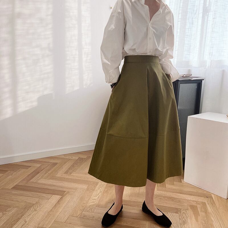 ハイウエストスカート スカート フレアスカート 膝下 ミモレ ミモレ丈 フレア Aライン ウエストマーク 切り替えデザイン ふわふわ ファスナー ポケット 大人可愛い きれいめ シンプル 大人 上品 おしゃれ お洒落 大人女子 エレガント モダン フォーマル 無地 春 夏 秋 10代 20代 30代 40代 50代 レディース 女性用 オフィス ビジネス OL 通勤 学生 通学 デート ホテル レストラン 着回し 普段使い S M L 白 ホワイト 緑 グリーン