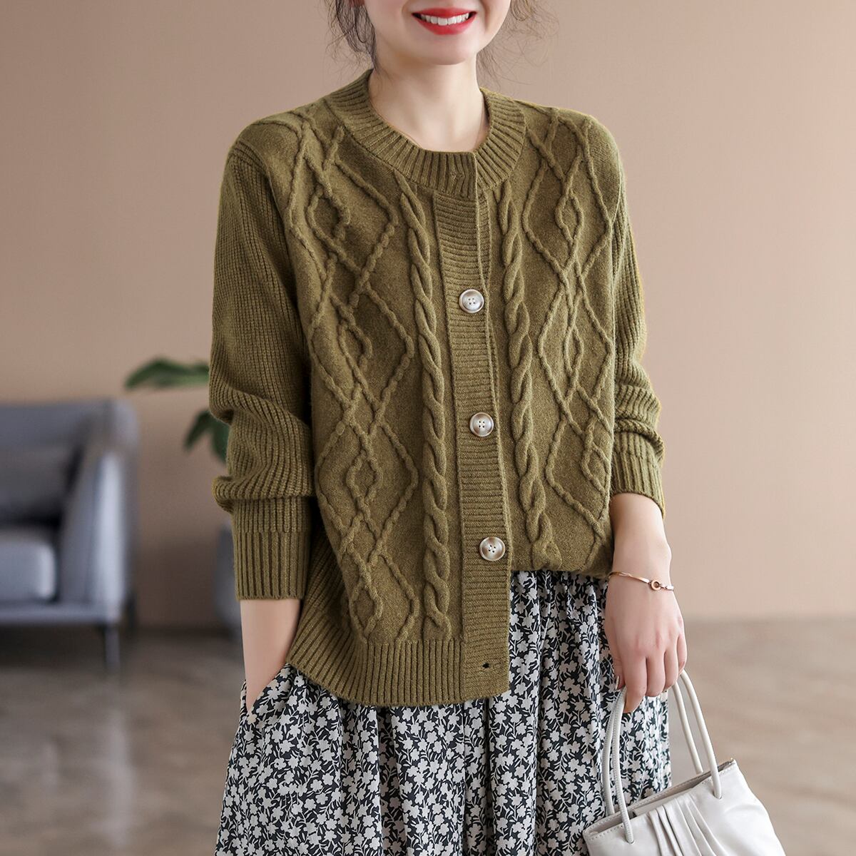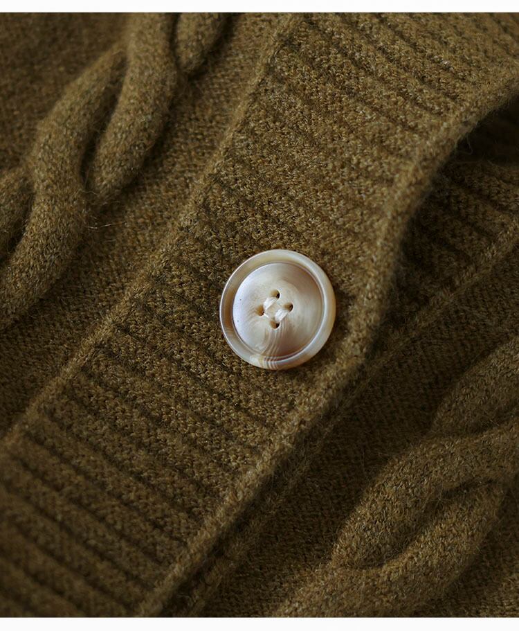 立体感のあるケーブル編みがほっこりとシーズンムードを高める長袖ニットカーディガン。