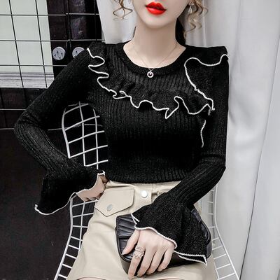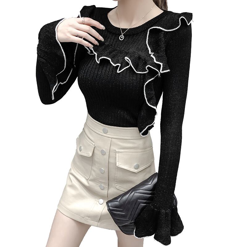 フリルでデザイン性のあるリブニット。