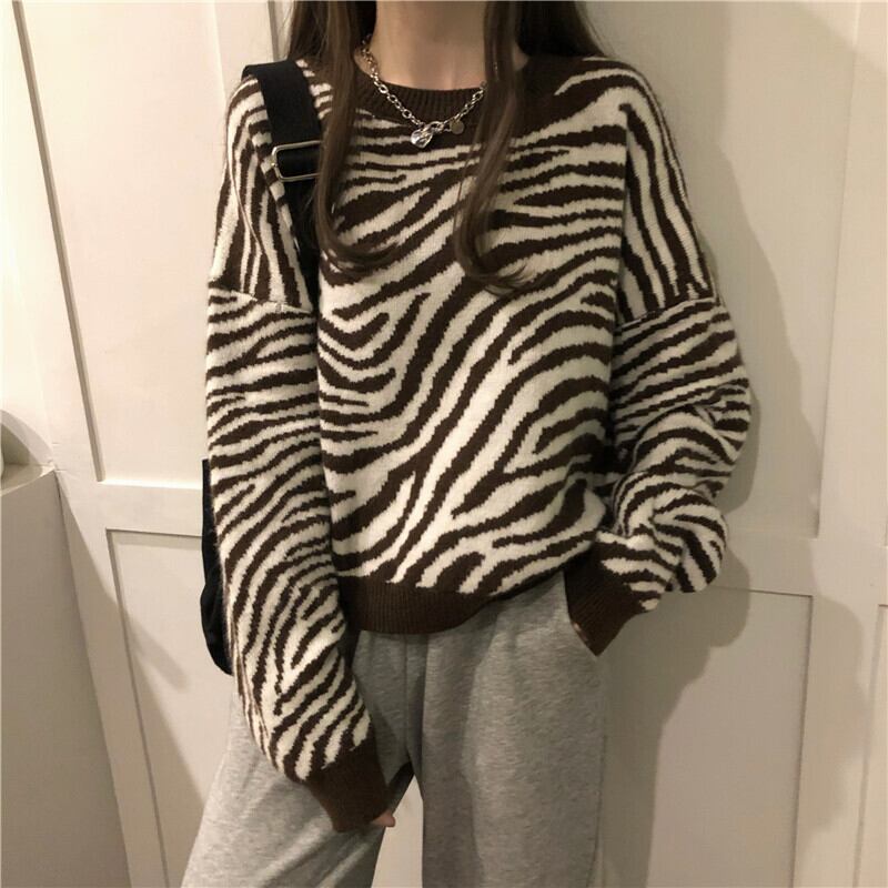 ゼブラ柄ニット トップス ニットソー セーター 袖あり 長袖 ラウンドネック リブ かわいい 大人可愛い きれいめ シンプル カジュアル 大人 上品 おしゃれ お洒落 大人可愛い 大人女子 こなれ感 ラフ ラブリー キュート ガーリー 個性的 モダン 主役級 存在感 柄 セブラ柄 秋 冬 10代 20代 30代 レディース 学生 通学 デート お出かけ 女子会 休日 着回し 普段使い 重ね着 色展開 黒 ブラック 緑 グリーン 茶色 ブラウン