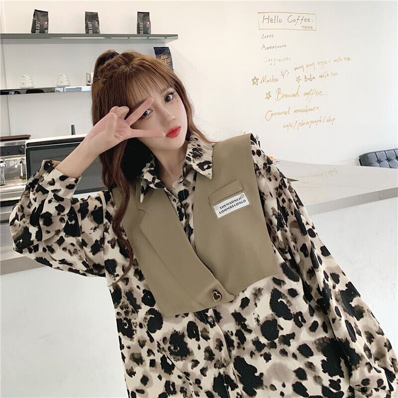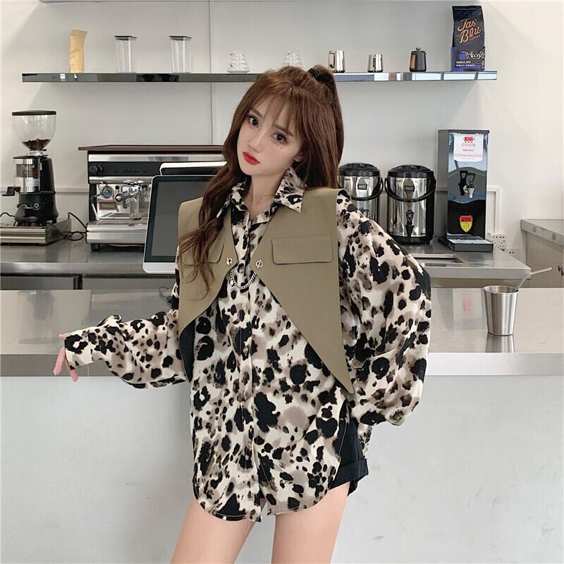 ヒョウ柄シャツ トップス シャツ 袖あり 長袖 襟付き 薄手 かわいい カジュアル おしゃれ お洒落 かっこいい 大人可愛い 個性的 主役級 存在感 柄 ヒョウ柄 春 夏 秋 10代 20代 30代 40代 レディース 女性用 学生 デート 休日 旅行 着回し 普段使い 重ね着 韓国 韓国系 ファッション フリーサイズ 黒 ブラック 茶色 ブラウン