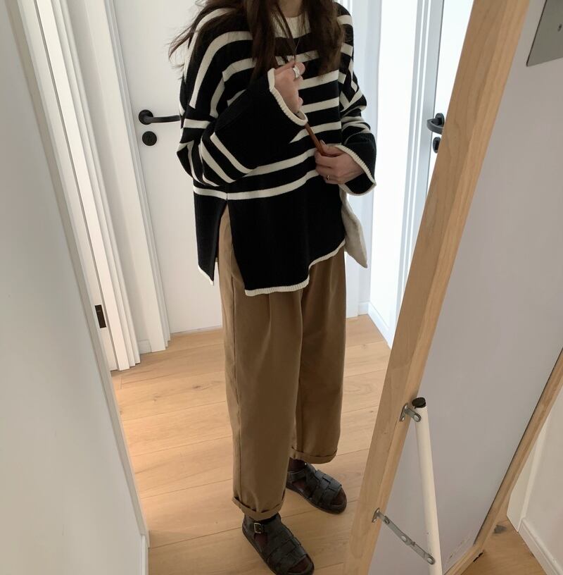 ボーダーセーター トップス セーター プルオーバー 袖あり 長袖 ボートネック ワイド スリット サイドスリット 大人可愛い カジュアル おしゃれ お洒落 大人可愛い 大人女子 こなれ感 ラフ 柄 ボーダー 春 秋 冬 10代 20代 30代 40代 50代 レディース 女性用 オフィス ビジネス OL 通勤 学生 通学 デート お出かけ 着回し 普段使い S M L XL 2XL 白 ホワイト 黒 ブラック