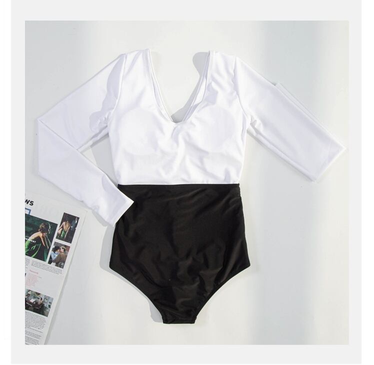 フロントツイストワンピース水着は胸元を綺麗に見せることができるセクシーな水着です。長袖なので二の腕をカバーできます。フレンチレトロで、ホワイトとブラックの切り替えデザインが印象的な水着となっています。