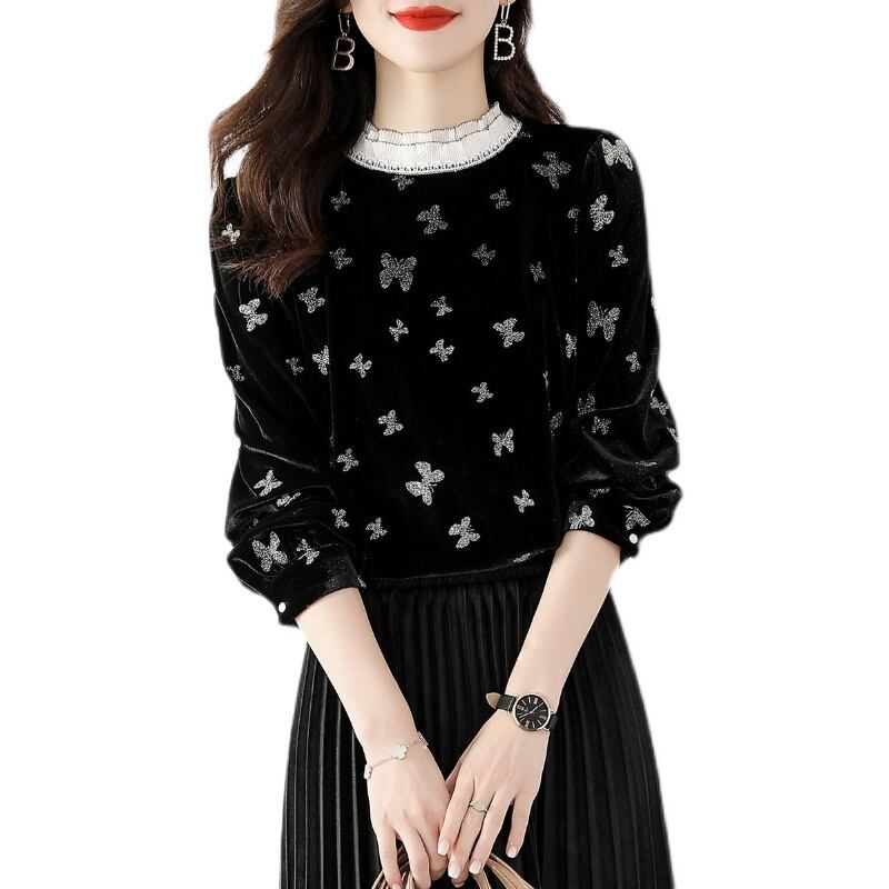 蝶柄ブラウス トップス ブラウス 袖あり 7分袖 七分袖 ハイネック レース かわいい 大人可愛い きれいめ シンプル カジュアル 大人 上品 おしゃれ お洒落 大人可愛い 大人女子 こなれ感 ラフ ラブリー キュート ガーリー ルーズ 個性的 モダン 主役級 存在感 柄 春 秋 10代 20代 30代 レディース OL 通勤 学生 通学 デート お出かけ 女子会 休日 着回し 普段使い 重ね着 サイズ S M L XL 色展開 黒 ブラック