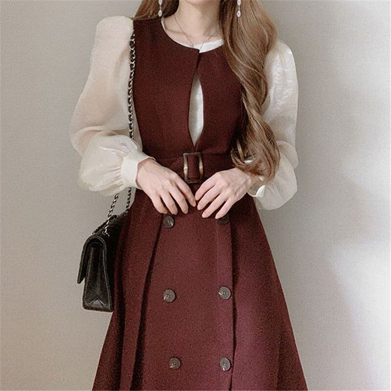 フレンチヴィンテージラウンドカラーダブルドブッストラップウエストノースリーブストラップドレス ワンピース 膝下 ミモレ丈 ノースリーブ Vネック ストレート ベルト ハイウエスト 大人可愛い きれいめ シンプル カジュアル 大人 上品 おしゃれ レトロ 大人女子 こなれ感 ラフ キュート ガーリー 無地 春 10代 20代 30代 OL 通勤 学生 通学 デート お出かけ 女子会 お泊まり 休日 旅行 高原 ガーデン 着回し 普段使い 重ね着 ブラウン ベージュ