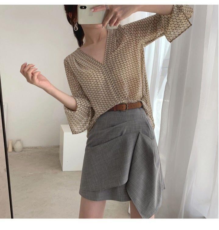Ⅴネックブラウス トップス ブラウス 袖あり 長袖 Vネック シフォン かわいい 大人可愛い きれいめ シンプル カジュアル 大人 上品 おしゃれ お洒落 大人可愛い 大人女子 こなれ感 ラフ ラブリー キュート ガーリー モダン 主役級 存在感 柄 春 秋 10代 20代 30代 レディース OL 通勤 学生 通学 デート お出かけ 女子会 休日 着回し 普段使い 重ね着 サイズ XS S M L XL 2XL 色展開 ベージュ