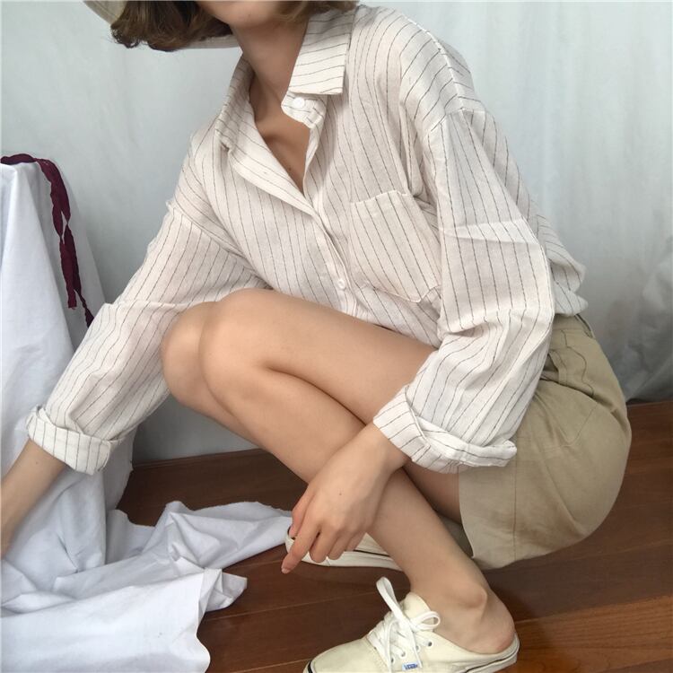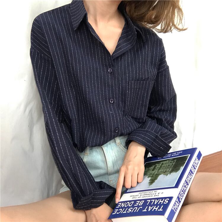トップス シャツ 白シャツ 白トップス 袖あり 長袖 ドロップショルダー 襟付き ストレート ポケット 前開き カジュアル 大人 おしゃれ お洒落 大人女子 こなれ感 ルーズ ストライプ 春 夏 秋 10代 20代 30代 40代 50代 レディース 女性用 ママ デート お出かけ 休日 旅行 着回し 普段使い 重ね着 楽ちん 体系カバー フリーサイズ 白 ホワイト ネイビー