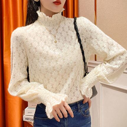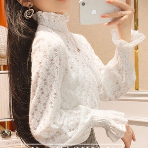 ハイネックレースブラウス トップス ブラウス 袖あり 長袖 ハイネック レース フリル かわいい 大人可愛い きれいめ シンプル カジュアル 大人 上品 おしゃれ お洒落 大人可愛い 大人女子 こなれ感 ラフ ラブリー キュート ガーリー 個性的 モダン 主役級 存在感 無地 春 秋 10代 20代 30代 レディース OL 通勤 学生 通学 デート お出かけ 女子会 休日 着回し 普段使い 重ね着 色展開 白 ホワイト 黒 ブラック アプリコット