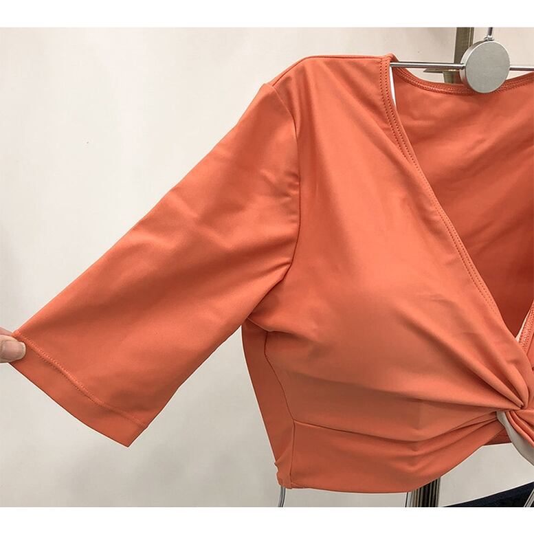 袖付きで気になる二の腕をカバーできる嬉しいデザイン