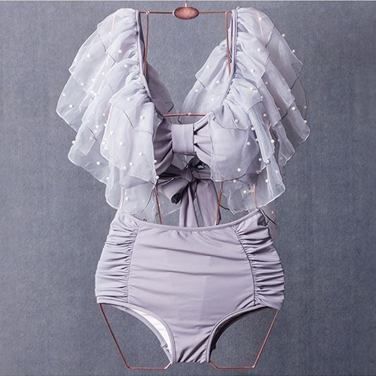 水着 ビキニ スイムウェア レディース タンキニ セクシービキニ セパレート ノンワイヤー パッド付き 体系カバー 二の腕カバー チュール フリル バックリボン ハイウエスト 透け感 シースルー 谷間 盛れる パール セット 上下セット 2点セット ツーピース かわいい 大人可愛い きれいめ セクシー 華やか おしゃれ お洒落 主役級 無地 10代 20代 30代 女性用 お揃い 春 夏 海 ビーチ プール リゾート 旅行 着痩せ 美スタイル 韓国 高見え M L XL 大きいサイズ ホワイト グレー