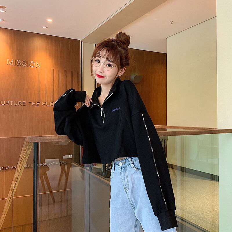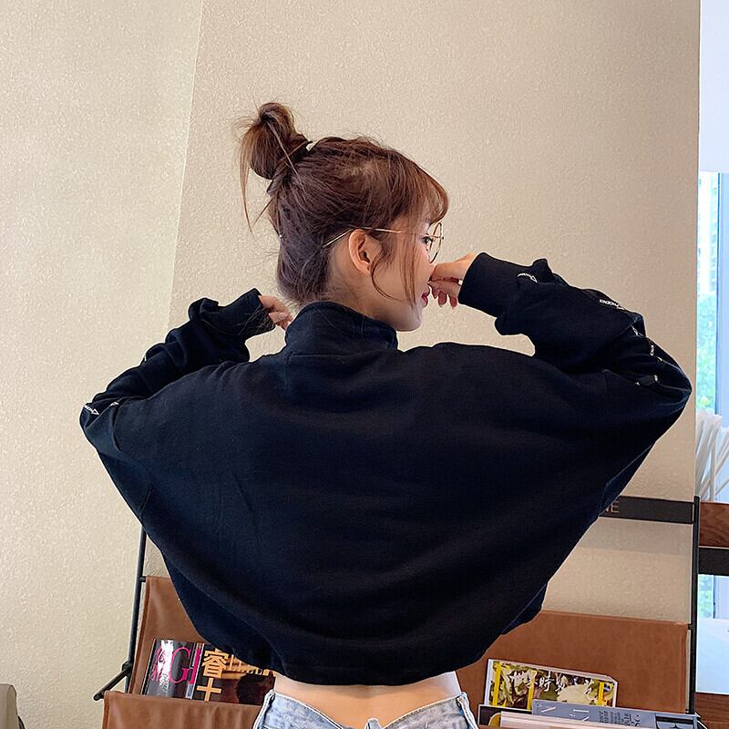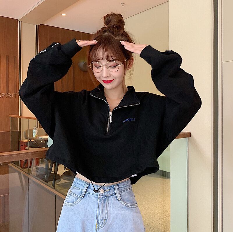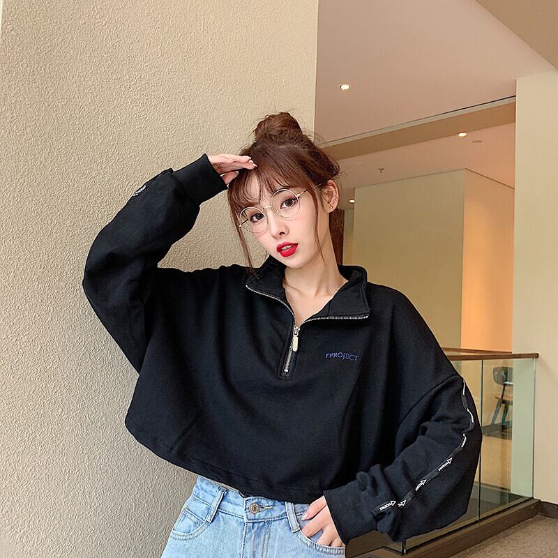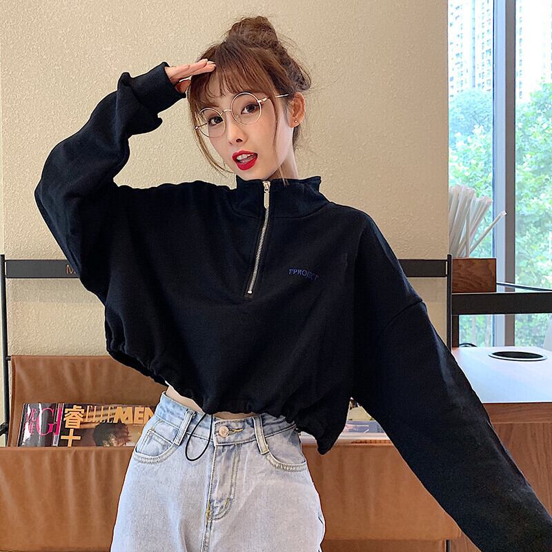 トップス Tシャツ トレーナー ショート丈 袖あり タートルネック 襟付き ワイド ファスナー ハイウエスト 絞り かわいい シンプル カジュアル 大人可愛い こなれ感 ラフ 無地 春 秋 10代 20代 30代 40代 レディース 女性用 ママ キッズ 女の子 お出かけ 公園デビュー 休日 運動 ジム ヨガ 普段使い ファッション 送料無料 サイズ M L XL ゆったり 色展開 黒 ブラック 灰色 グレー