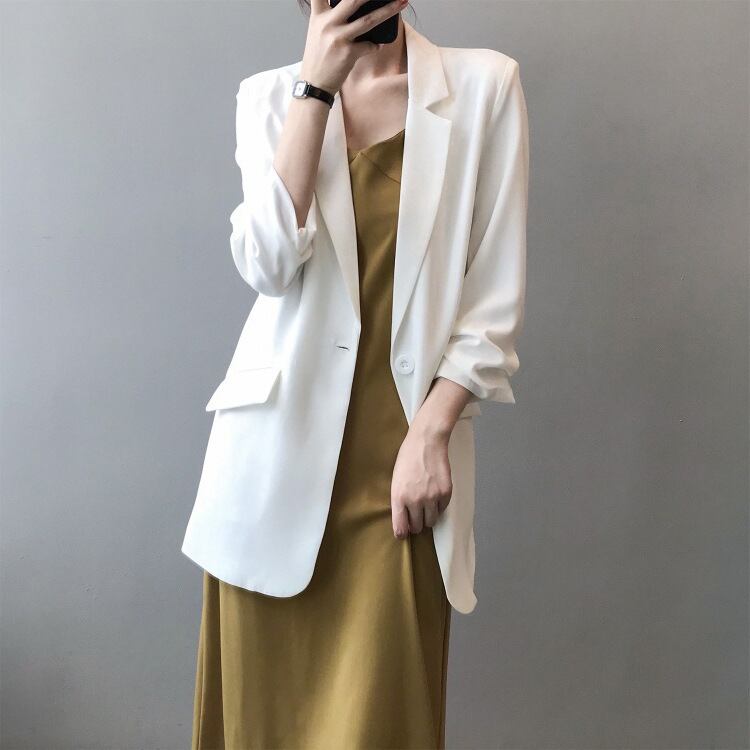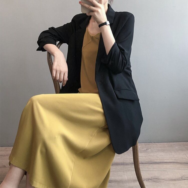 ロング丈で上品な抜け感が今っぽいスーツジャケット。