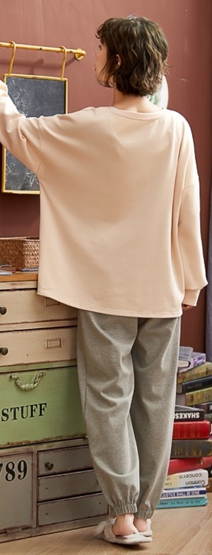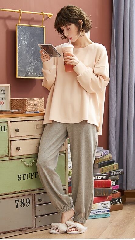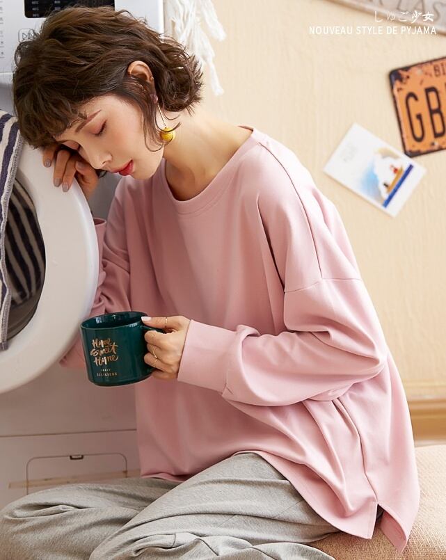 ルームウェア パジャマ カットソー プルオーバー ズボン 部屋着 寝巻き ナイトウェア ジョガーパンツ 9分丈 アンクル丈 袖あり 長袖 Uネック 襟なし ストレート ウエストゴム 綿 上下セット 2点セット かわいい 大人可愛い シンプル カジュアル 大人 おしゃれ お洒落 大人女子 こなれ感 ラフ 無地 秋 冬 10代 20代 30代 40代 60代 レディース 休日 運動 ジム ヨガ 普段使い 楽ちん 定番 M L XL 2XL ゆったり ゆる ホワイト ピンク オレンジ