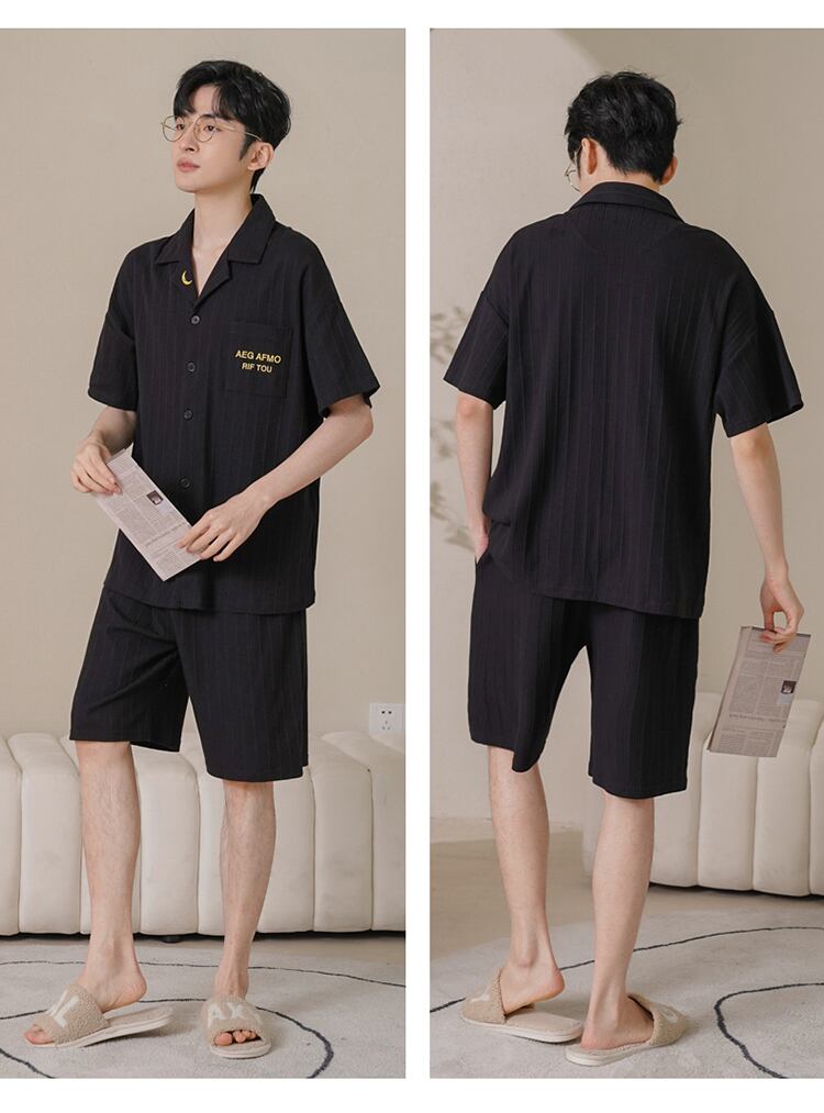 ルームウェア パジャマ 部屋着 寝巻き ナイトウェア ショートパンツ ショート 膝上 袖あり 半袖 Vネック ストレート 刺繍 ポケット 前開き ウエストゴム 薄手 上下セット 4点セット シンプル カジュアル おしゃれ ラフ メンズライク ラブリー 主役級 無地 柄 シマ 月柄 ムーン 星柄 スター 夏 10代 20代 30代 ペア カップル お泊まり 休日 お揃い 楽ちん M L XL 2XL 3XL ブラック