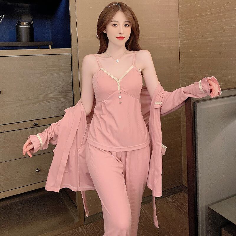 セットアップ ルームウェア パジャマ カーディガン ズボン 部屋着 寝巻き ナイトウェア キャミソール ロング ロング丈 ノースリーブ 長袖 Vネック レース フリル 綿 3点セット かわいい 大人可愛い 上品 大人女子 ラブリー セクシー エレガント とろみ感 無地 春 秋 20代 30代 40代 50代 お泊まり 休日 重ね着 ファッション コーデ スタイル 防寒 モテ 体系カバー M L XL 2XL ホワイト ブラック ピンク