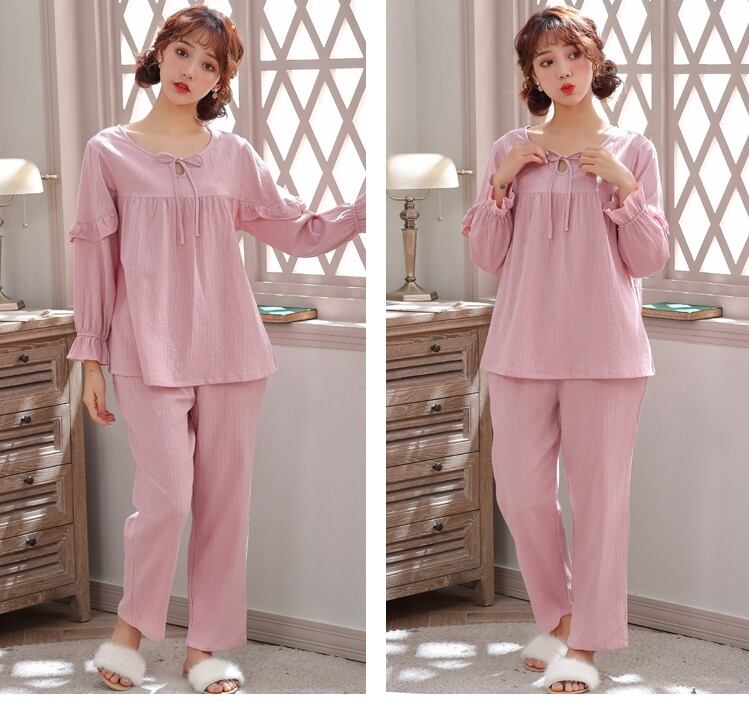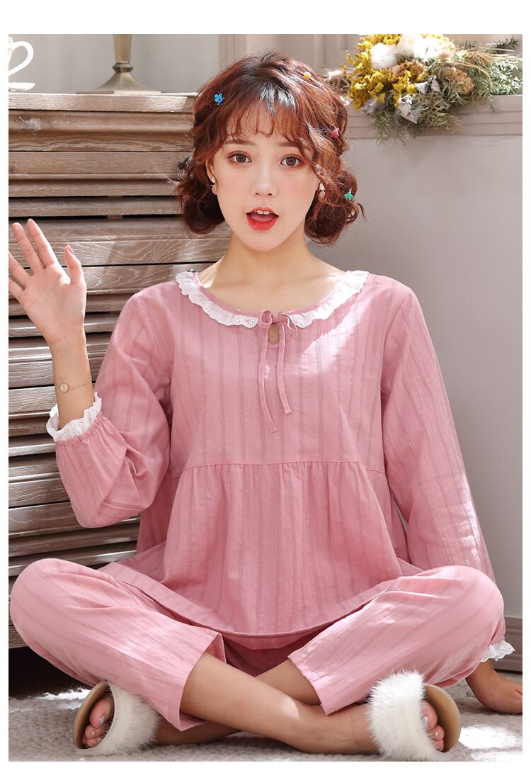 薄手のコットン素材のガーリーなパジャマ。