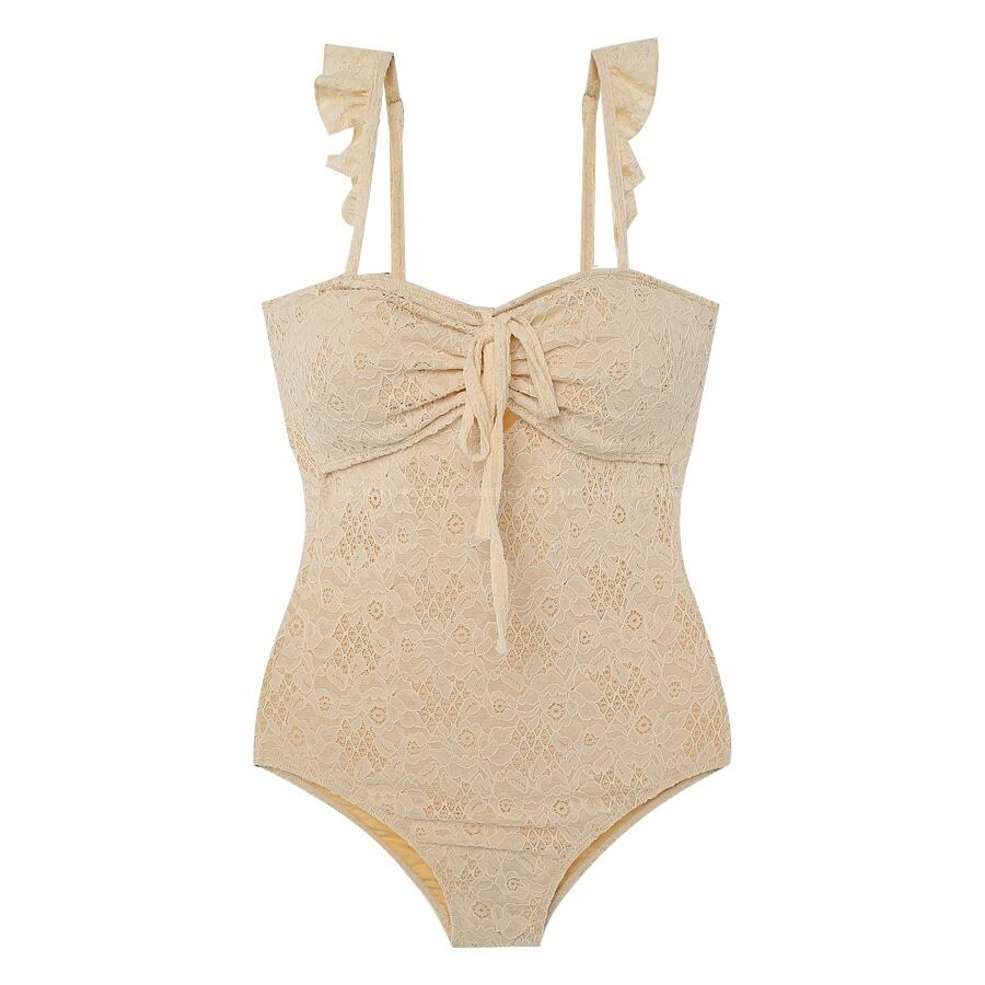 水着 スイムウェア ワンピース水着 ワンピースタイプ レース 総レース フリル フリルショルダー リボン 甘め かわいい 可愛い ベージュ 生成 M L XL 海 海水浴 ビーチ リゾート バカンス プール ナイトプール 温泉 サウナ デート 体型カバー 大人かわいい 大人可愛い 大人 フェミニン スリム タイト 露出控えめ 10代 20代 30代 パッド付 パッド入り 韓国ファッション 韓国 レース水着 総レース水着 レースフリル ガーリー ドーリー キュート シンプル きれいめ 大人女子
