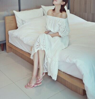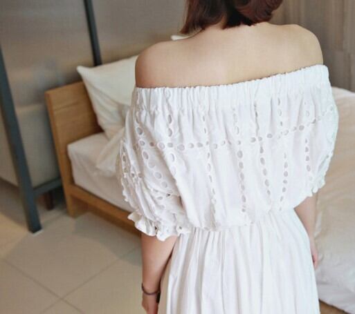 ワンピース ロングワンピース レディース レースワンピース ロング丈 マキシ丈 マキシ丈ワンピース オフショルダー オフショル ふんわり袖 半袖 半袖ワンピース ホワイト 白 ワンサイズ 清楚 上品 華やか レトロ レトロかわいい 春 夏 お出かけ デート バカンス ビーチ 旅行 フィッシュテール フリル コットンドレス コットンワンピース ハイウエスト リネン フェミニン 甘め かわいい 可愛い 大人かわいい 大人可愛い 20代 30代 体型カバー 楽ちん ゆる ゆったり ボリューム袖