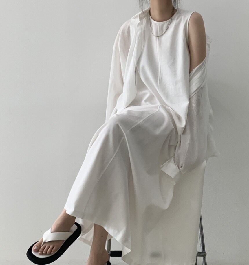 ワンピース フレアワンピース ロング ロング丈 袖なし ノースリーブ Uネック スリム Aライン 大人可愛い きれいめ シンプル カジュアル 大人 上品 かっこいい 大人女子 こなれ感 ラフ モード系 モダン 主役級 存在感 抜け感 ナチュラル シック 無地 春 夏 20代 30代 40代 60代 レディース デート お出かけ 休日 リゾート 旅行 高原 ホテル ファッション コーデ スタイル 楽ちん ワンサイズ ホワイト ブラック