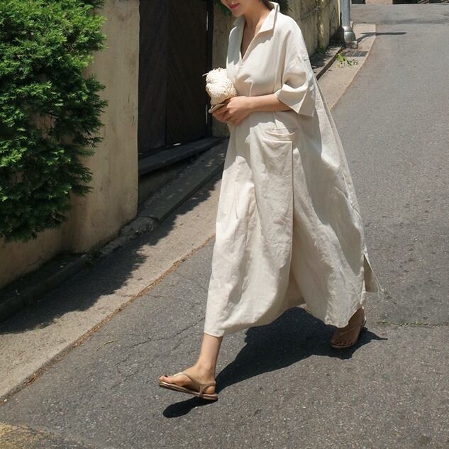 ワンピース シャツワンピース 9分丈 アンクル丈 袖あり 7分袖 七分袖 Vネック 襟付き ワイド Aライン ポケット 綿 麻 リネン 大人可愛い きれいめ シンプル カジュアル 大人 上品 エキゾチック こなれ感 ラフ ルーズ モダン 主役級 抜け感 ナチュラル 上質 無地 夏 20代 30代 40代 50代 60代 レディース リゾート 旅行 普段使い ファッション 楽ちん 体系カバー S M L XL