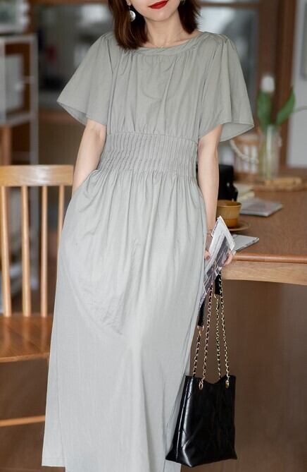 楽ちんで細見えするシャーリングのウエストがポイント◎