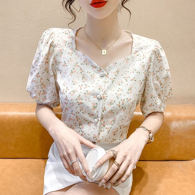 ショート丈の小花柄ブラウスです。