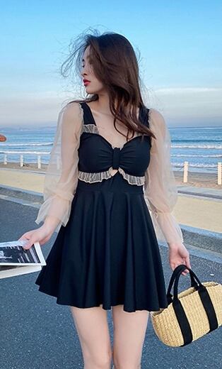水着 スイムウェア 体系カバー水着 スカパン ワンピース パッド付き 二の腕カバー 長袖 リボン チュール シフォン フリル ウエストマーク 切り替えデザイン ハイウエスト 透け感 シースルー 日焼け防止 ギャザー かわいい 大人可愛い セクシー おしゃれ お洒落 女っぽ ラブリー キュート ガーリー 無地 10代 20代 30代 レディース 春 夏 海 ビーチ プール リゾート 旅行 体系カバー 二の腕カバー 着痩せ モテ M L 2XL 3XL 4XL 5XL 黒 ブラック