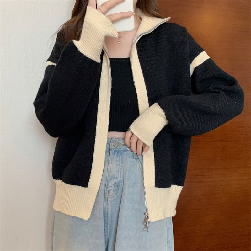 アウター ジャケット パーカー ブラック ホワイト ニット セーター カジュアル 2色 バイカラー カジュアル 大人カジュアル 襟付き 可愛い キュート 大人っぽ 大人可愛い L XL 2XL 3XL 4XL 大きいサイズ ビックサイズ 10代 20代 30代 40代 ファッション トレンド 人気 定番 秋 冬 デート お出かけ 休日 ショッピング アウトドア キャンプ グランピング キュートスポーティー マニッシュ ボーイッシュ お洒落 女性用 レディース 韓国系 インスタ映え 送料無料 プチプラ