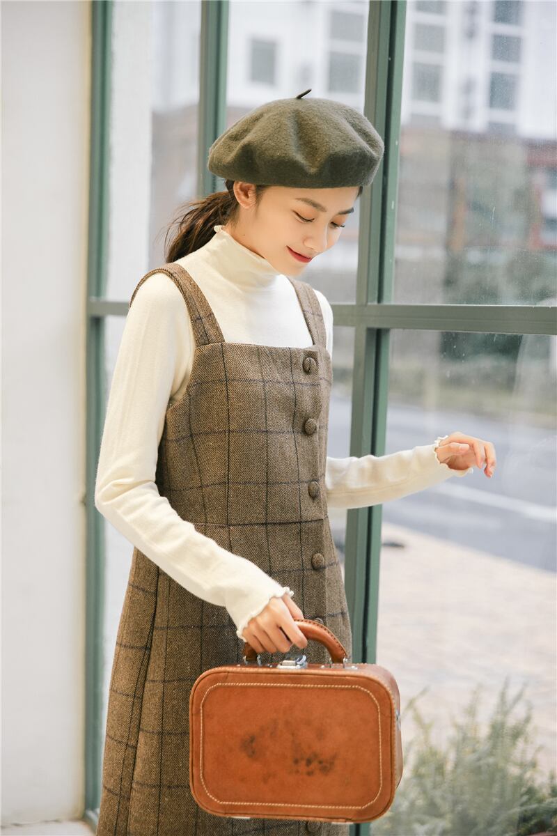 秋冬にぴったりなウール素材のジャンパースカートです。