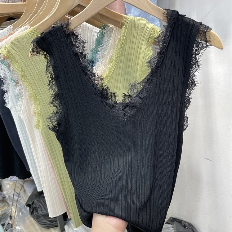 トップス ニットソー プルオーバー 袖なし ノースリーブ Vネック スリム 細身 Iライン レース リブニット 薄手 かわいい きれいめ シンプル カジュアル 大人 おしゃれ お洒落 大人可愛い 大人女子 こなれ感 キュート ガーリー セクシー 抜け感 無地 春 夏 20代 30代 40代 50代 レディース OL デート お出かけ 休日 着回し 普段使い 重ね着 ファッション コーデ モテ S M L XL 白 ホワイト 黒 ブラック