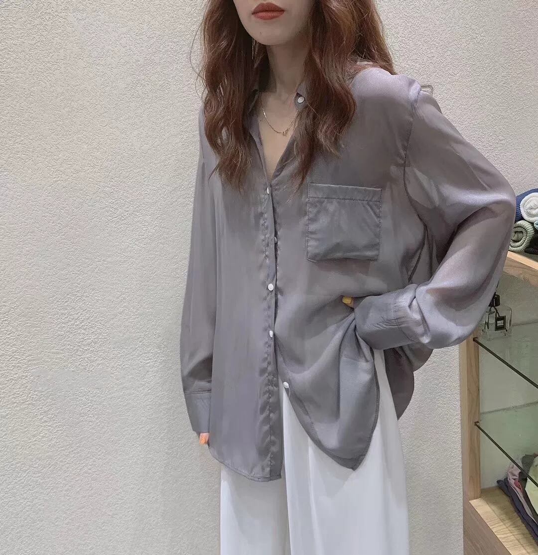 シャツ ブラウス 襟付き シースルー 透け感 長袖 レディース 女性用 ミディアム丈 羽織 可愛い 無地 シンプル きれいめ キュート 大人可愛い 大人っぽ カジュアル 夏 春 S M L XL 大きいサイズ ホワイト ピンク グリーン グレー イエロー パープル パープル 10代 20代 30代 40代 デート 女子会 ランチ 休日 お出かけ ショッピング コーデ ファッション トレンド 人気 定番 韓国系 オルチャン インスタ映え プチプラ 送料無料 お洒落 ぬけ感 こなれ感 セクシー 肌見せ 着痩せ