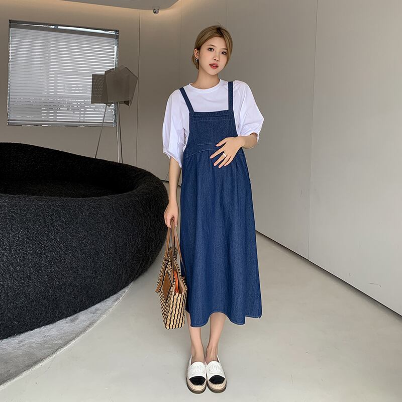 トップス ワンピース Tシャツ 白トップス デニムワンピース ロング ロング丈 袖あり 半袖 ボリューム袖 Uネック 襟なし ワイド Aライン ポケット デニム 2点セット ツーピース 大人可愛い シンプル カジュアル おしゃれ お洒落 レトロ ラブリー 無地 夏 20代 30代 レディース お出かけ 着回し 普段使い 重ね着 コーデ 楽ちん 体系カバー M L XL 2XL ゆったり ホワイト デニム