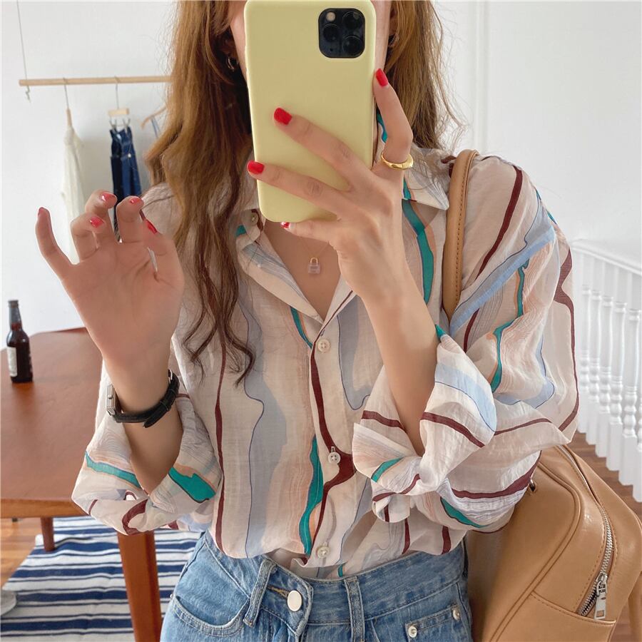 シャツ ブラウス トップス 長袖 襟付き Vネック レトロ 可愛い キュート ストライプ カラフル ピンク ブルー ブラウン グリーン フリーサイズ ワンサイズ 10代 20代 30代 40代 きれいめ 大人可愛い 大人カジュアル 大人っぽ 通勤 通学 休日 お出かけ デート ランチ カフェ 着痩せ スタイル スリム 普段使い コーデ ファッション トレンド 人気 春 夏 秋 お洒落 体系カバー プチプラ 送料無料 韓国系 オルチャン インスタ映え 着回し 高見え レディース 女性用 大人