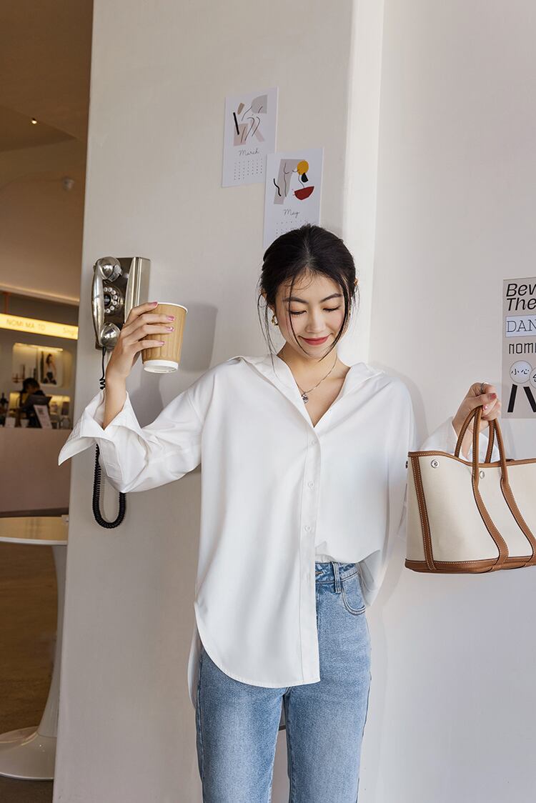 トップス シャツ ストレートシャツ シンプル 無地 長袖シャツ ロングスリーブ 長袖 ポロカラー フロントボタン ボタンシャツ ホワイト グリーン 白 緑 XS S M L お出かけ デート デイリー 普段使い ママコーデ オフィス オフィスカジュアル 通勤 きちんと感 きれいめ きれい色 着回し 羽織り レイヤード 万能 ドロップショルダー こなれ感 20代 30代 40代 50代 オールシーズン 春 夏 秋 冬 大人 大人カジュアル コンサバ エレガント おしゃれ 韓国ファッション 韓国