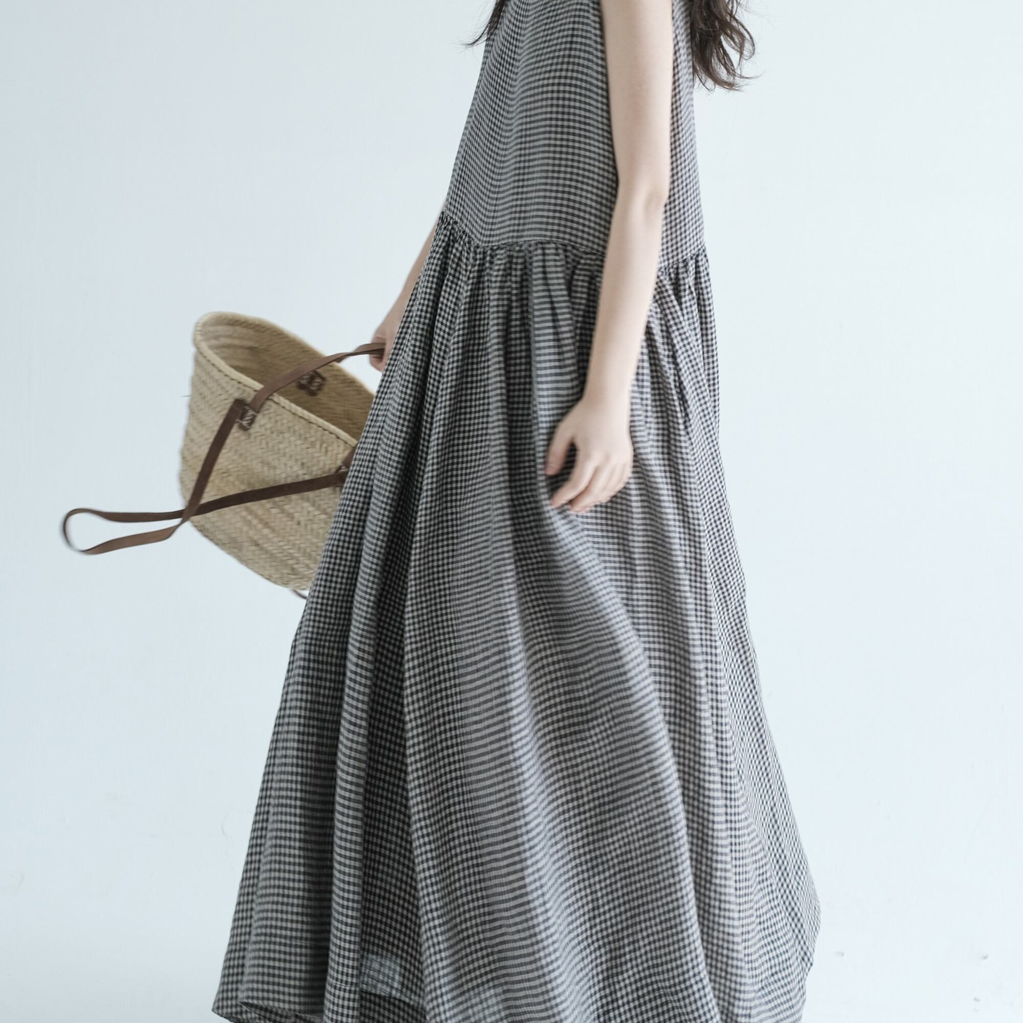 ワンピース マキシ丈ワンピース マキシ丈 ロングワンピース ロング丈 ロング丈ワンピース ノースリーブ 袖なし チェック柄 チェック ラウンドネック Aライン Aラインワンピース ラフ ルーズ オーバーサイズ プルオーバー ネイビー ワンサイズ お出かけ デート デイリー 普段使い ルームウェア 部屋着 ママコーデ 楽ちん ゆる ゆったり 大人 大人カジュアル 体型カバー 公園 お散歩 春 夏 韓国ファッション 韓国 ナチュラル 素朴 20代 30代 リネンワンピース リネン 麻 麻ワンピース