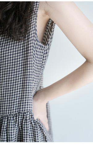 細かなチェック柄がポイントのマキシ丈ワンピース