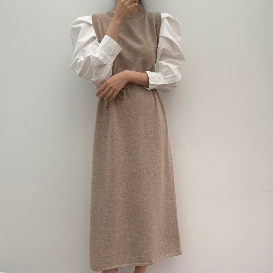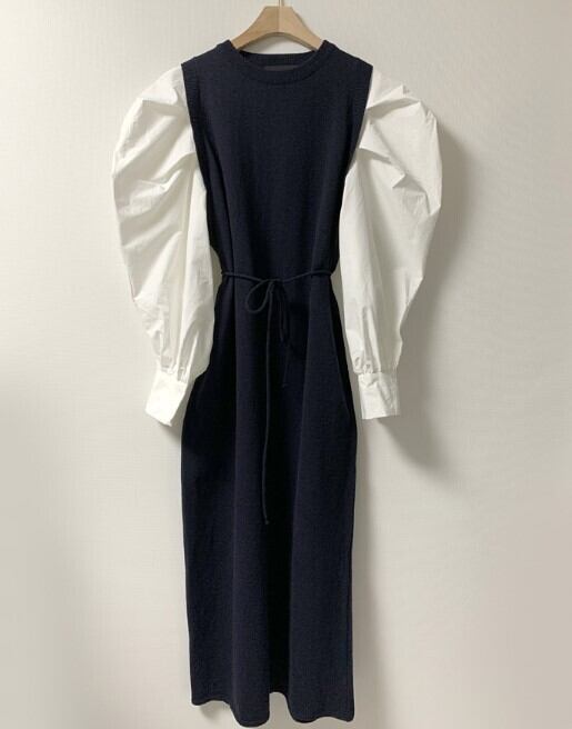 ワンピース ニットワンピース ニットワンピ ロングワンピース ロング丈 フェイクレイヤード フェイクツーピース レイヤード風 重ね着風 長袖 ロングスリーブ 長袖ワンピース ふんわり袖 ふんわり ボリューム袖 パフスリーブ ハイウエスト ラウンドネック シンプル 無地 大人 大人かわいい 大人可愛い 上品 エレガント きれいめ ベージュ ブラック ワンサイズ お出かけ デート デイリー 普段使い オフィスカジュアル 通勤 オフィス 体型カバー ママコーデ 主役級 こなれ感 トレンド トレンド感 高見え