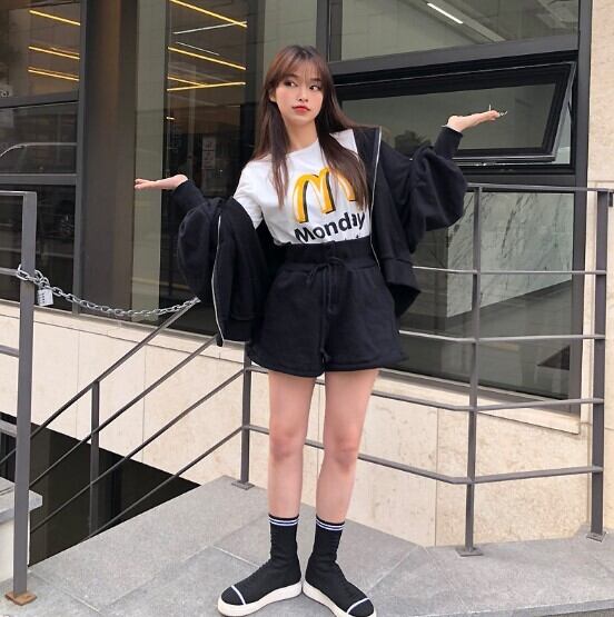 ルーズなパーカーとシンプルでかわいいショートパンツのセットアップ