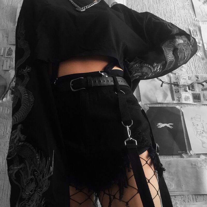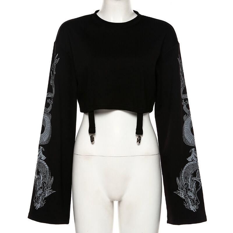 トップス カットソー ショート丈 クロップド丈 ミニ丈 長袖 ブラック 刺繍 和柄 ゆったり ゆる サスペンダー セーター プリント かっこいい クール S M L 可愛い キュート 個性的 主役級 ストリート ヒップホップ ダンス 10代 20代 30代 休日 お出かけ イベント ライブ ショッピング 旅行 こなれ感 主役級 コーデ ファッション トレンド 人気 春 秋 冬 インスタ映え プチプラ 送料無料 着痩せ 体系カバー 露出 肌見せ セクシー sexy スタイルアップ 脚長 スリム 高見え