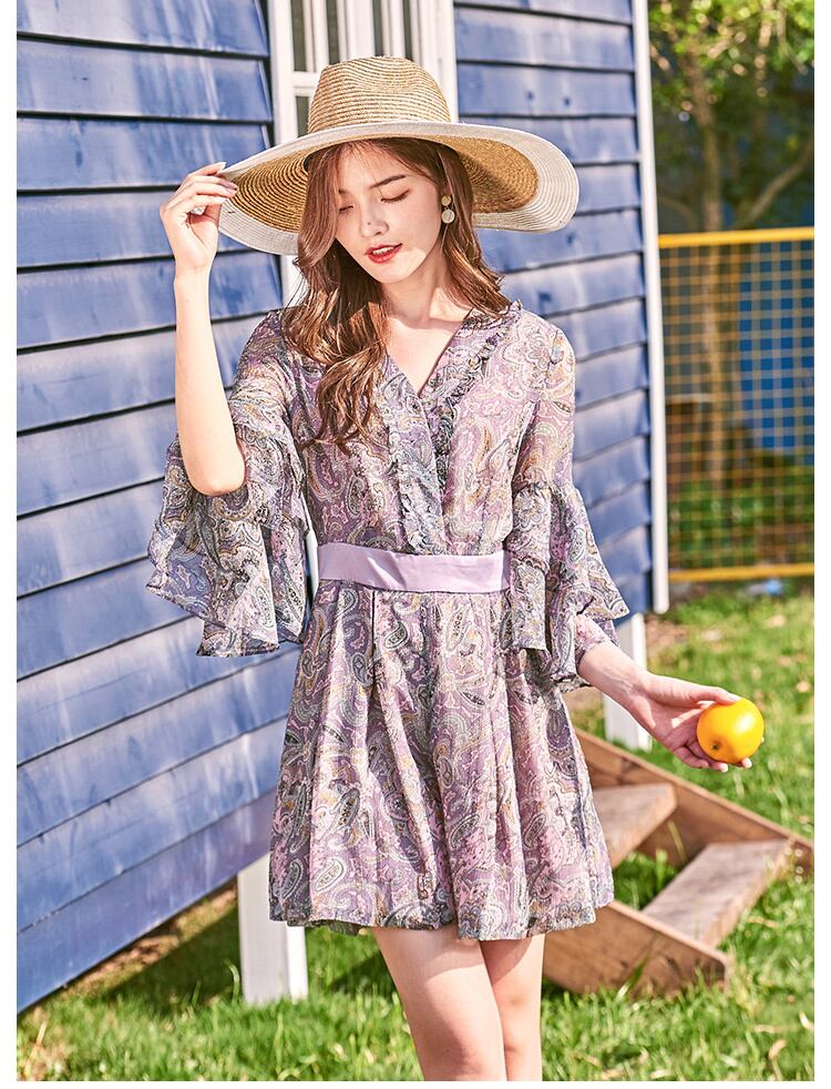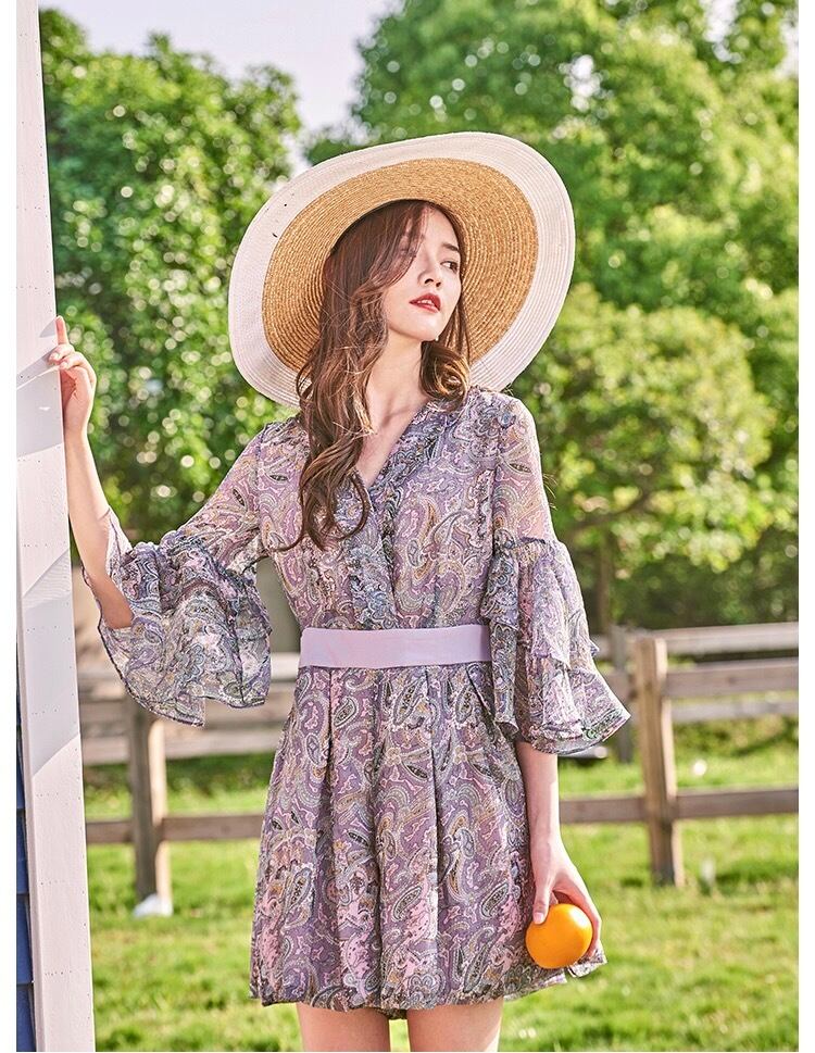 ワンピース ショートパンツ フレアワンピース ミニ丈ワンピース ドレス パンツ 柄 グレー パープル Vネック レディース 女性用 フレア 袖あり 7分袖 可愛い キュート エスニック アジアン 春 夏 S M L XL 大きいサイズ ウエストマーク スタイル スタイルアップ 体系カバー 着痩せ デート お出かけ 休日 旅行 海 リゾート ショッピング 10代 20代 30代 40代 韓国系 オルチャン インスタ映え 送料無料 高見え 高級感 シフォン キュート ガーリー 大人可愛い 大人っぽい モテ